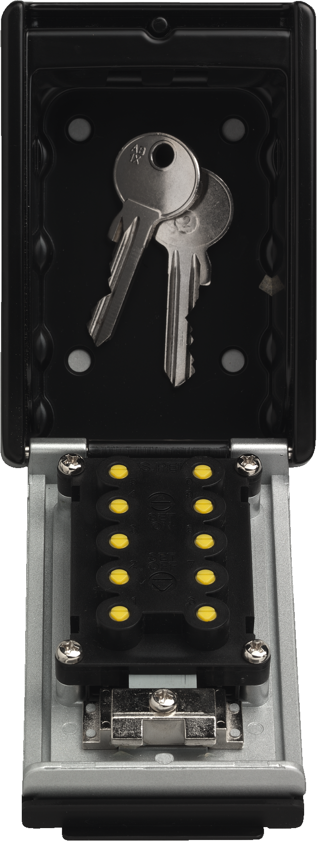 Ein Zuhause für viele Schlüssel: Mit unserer KeyGarage™ 767 lassen sich Ihre Schlüssel und Karten bequem und sicher verstauen. Im Inneren des stabilen Metallgehäuses haben bis zu 20 Schlüssel und 17 Karten Platz. Das Metallgehäuse lässt sich nur per Zahlencode öffnen. Somit haben nur autorisierte Personen Zugang - was sich insbesondere bei häufig wechselnden Personengruppen anbietet: Handwerker, Feriengäste, Fahrzeugverleihs, Pflegepersonal und Ähnliches. Das Tastfeld mit Push-Buttons wird durch eine robuste Verschlussklappe abgedeckt. Im geschützten Außenbereich kann die 767 an der Wand montiert werden.