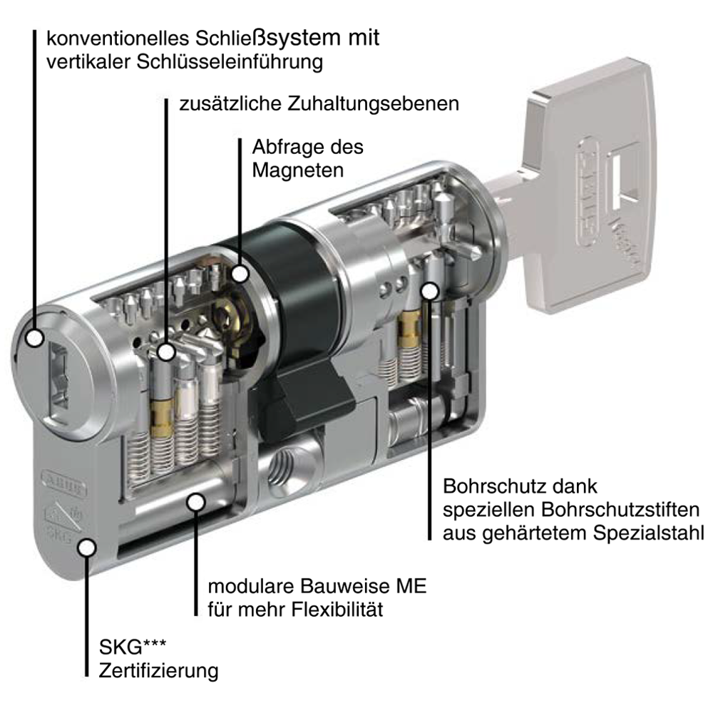 ABUS Magtec™ stellt jenes aktuelle klassische Schließkonzept vom Hause ABUS Pfaffenhain. Jene zukunftsweisende Magnet-Technik im Gehäuse sowie am Schlüssel verspricht Nutzern einen extrem starken Schutz gegen unbefugte Schlüssel-Duplikate beziehungsweise Manipulation dieser Schließ-Systeme. Dank jenem im Schlüssel integrierten Magneten bleibt das Produkt ebenso vor 3D Druck gesichert. Zwecks höchster Anpassbarkeit wurde der Zylinder mit der modularen ME-Technik versehen. Dieser kann daher jederzeit an Ihre Haustür adaptiert werden. volle Patent-Laufzeit bis 2038 (Recht beantragt) sowie zeitloser Markenschutz