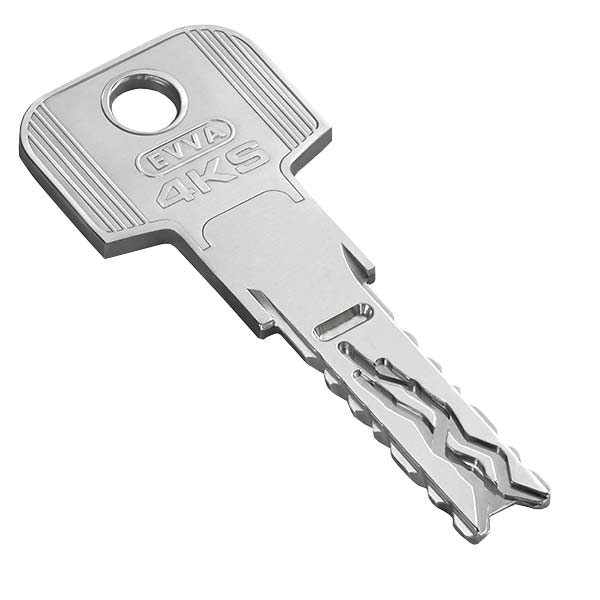 EVVA 4KS (4-Kurven-System) ist das widerstandsfähigste System unter den mechanischen Schließsystemen. Mit patentierter federfreier Kurventechnologie ist 4KS für den härtesten Einsatz geeignet wie z.B. hoch oben am Berg oder in Produktionsbetrieben mit hoher Schmutzbelastung. Der Wendeschlüssel bietet ein komfortables Ansteckverhalten und dreht sich leicht und leise im Zylinder. Selbstverständlich hat auch 4KS ein EVVA-eigenes Merkmal: Die sich überschneidende Kurvenfräsung. Diese garantiert höchste Sicherheit und schließt eine Schlüssel-Manipulation innerhalb der Schließanlage aus.