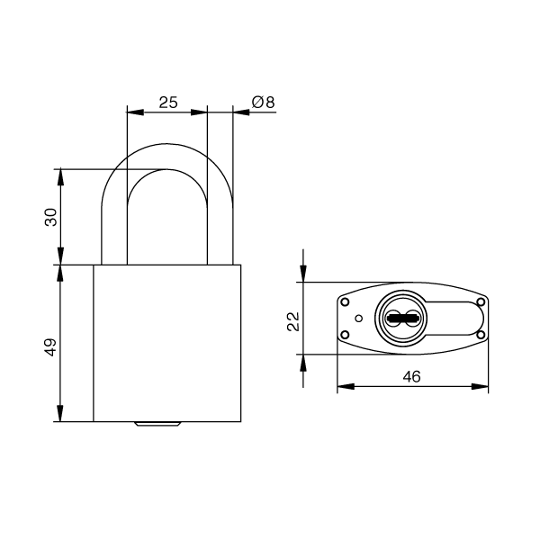 - Bügel aus gehärtetem, chemisch vernickeltem Stahl oder aus Nirostastahl