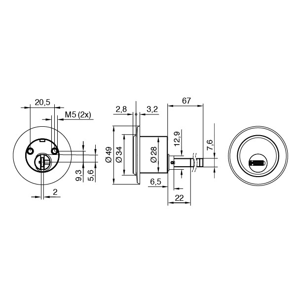 - Einbaudurchmesser: 28 mm