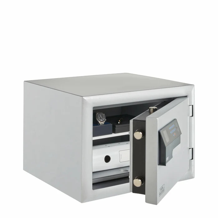 Damit Wertvolles richtig organisiert ist, sorgen je nach Modell ein (MTD 740 und MTD 750) oder zwei verstellbare Fachböden (MTD 760 und MTD 780) für Ordnung. Die Tresor-Modelle in vier Größen sind mit zwei Schließ-Systemen erhältlich. Natürlich mit dem klassischen Schlüssel (K-Modelle). Oder dem modernen elektronischen Schließ-System “SecuTronic” (E FP Modelle) für die Öffnung per Code und Fingerprint. Das Hochsicherheits-Doppelbartschloss “SecuSafe” bietet ein komfortables Extra. Denn sollten Sie einen Schlüssel verlieren, können Sie einfach ein neues Schlüssel-Set bestellen und das Schloss auf die neuen Schlüssel umstellen.