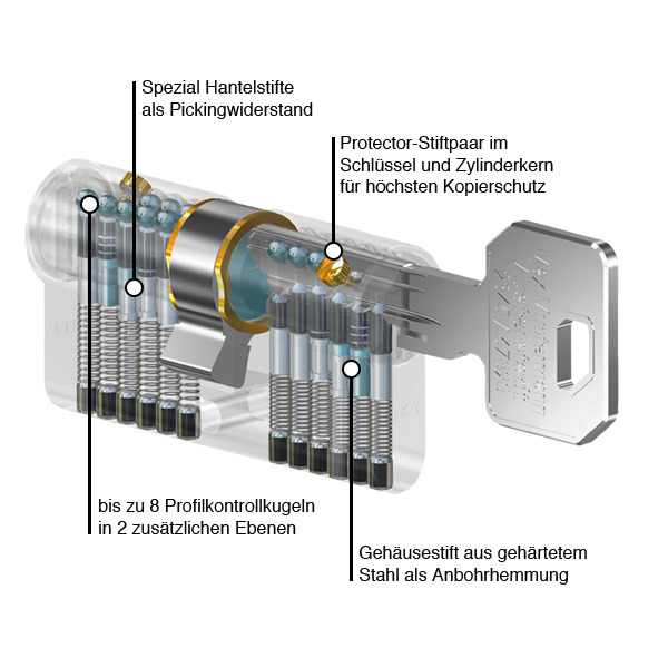 - anwenderfreundliches Zackenschlüsselsystem